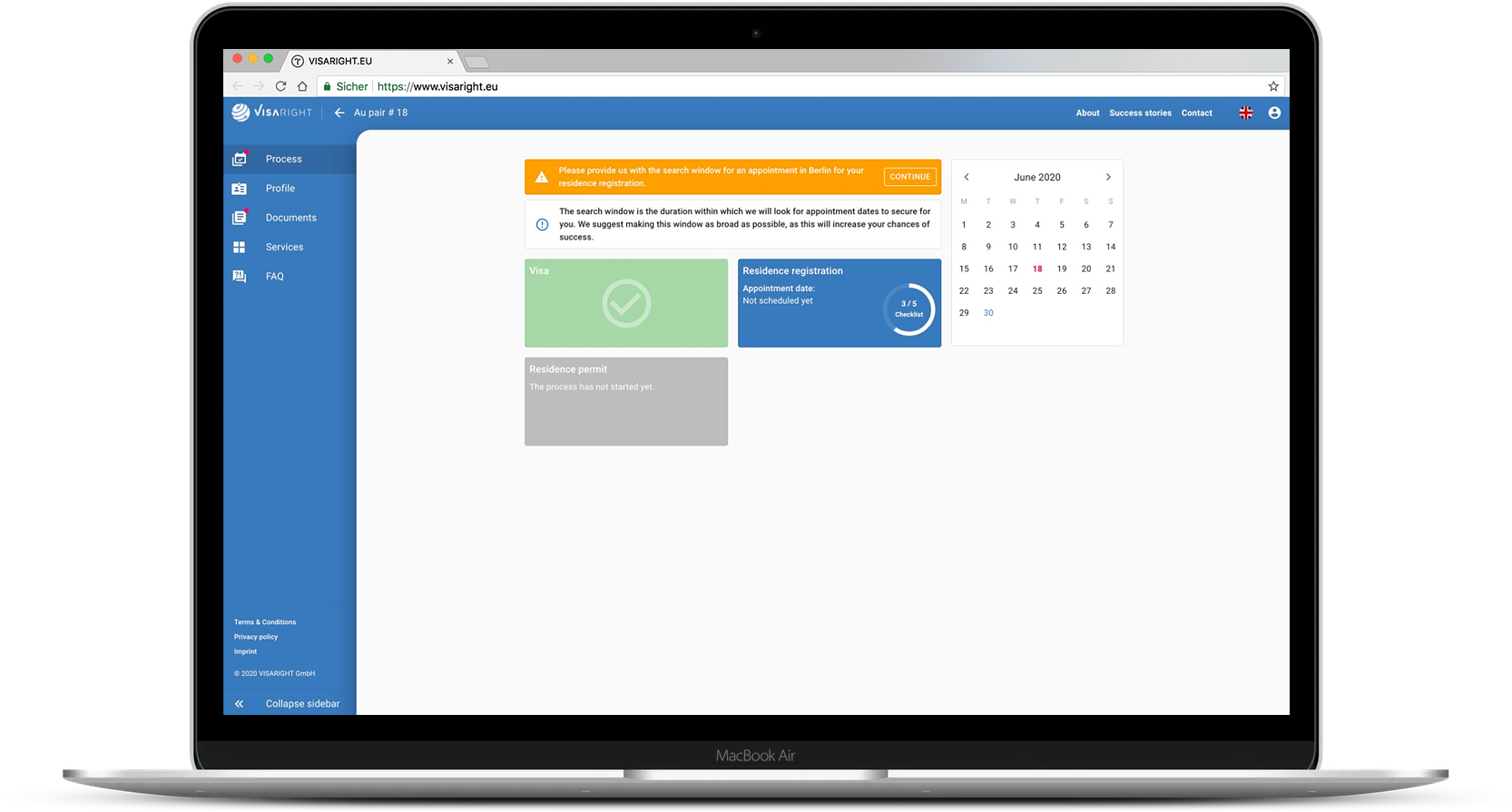 Settling down in Germany can be a long process. VISARIGHT is with you from start to finish. First, we calculate your chances of successful immigration free of charge with our Eligibility Check algorithm — just devote 2 minutes of your time to answering a few straightforward questions about your profile. After that, your customer success manager will be in touch. Preparation of documents, arrangement of consular appointments, communication with authorities — your manager will deal with all of these issues and update you on your progress throughout the whole relocation cycle. No queues, no red tape.